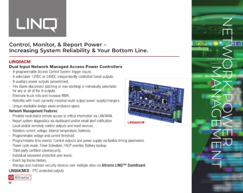 - Manage and maintain security devices over multiple sites via Altronix LINQ™ DashBoard.