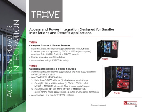- Supports a single Altronix power supply/charger and Mercury boards