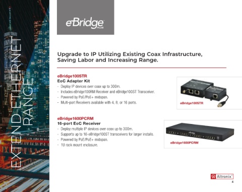 - Supports up to 16-eBridge100ST transceivers for larger installs.