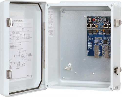 Altronix NetWaySP4WPN Outdoor PoE+ Hardened Switch provides two (2) 1Gb SFP (Fiber) ports and four (4) PoE+ (30W) ports, passing data for PoE/PoE+ compliant devices. Cameras/ edge devices may be located up to 100m from the unit. Embedded LINQ Technology allows you to monitor, control, and report power and diagnostics from anywhere.